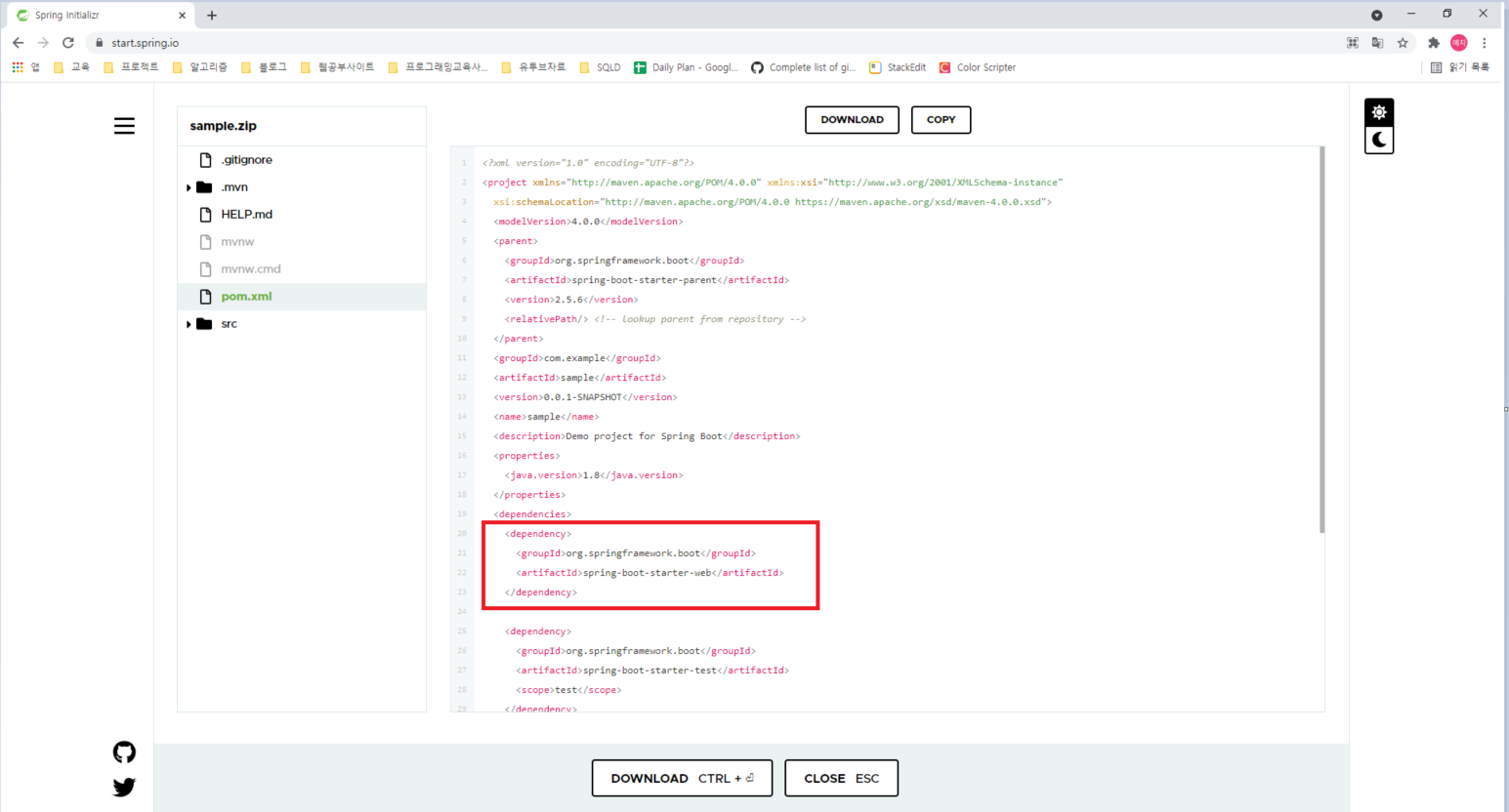 'spring-boot-starter-web' dependency가 추가된 것을 확인할 수 있다.