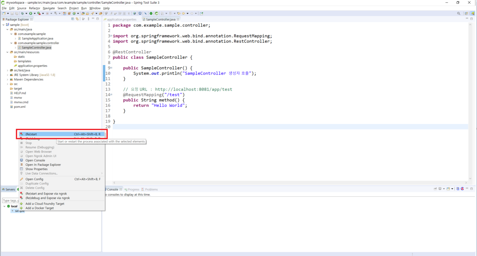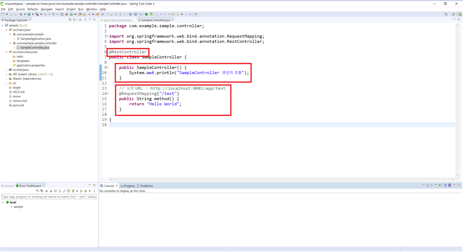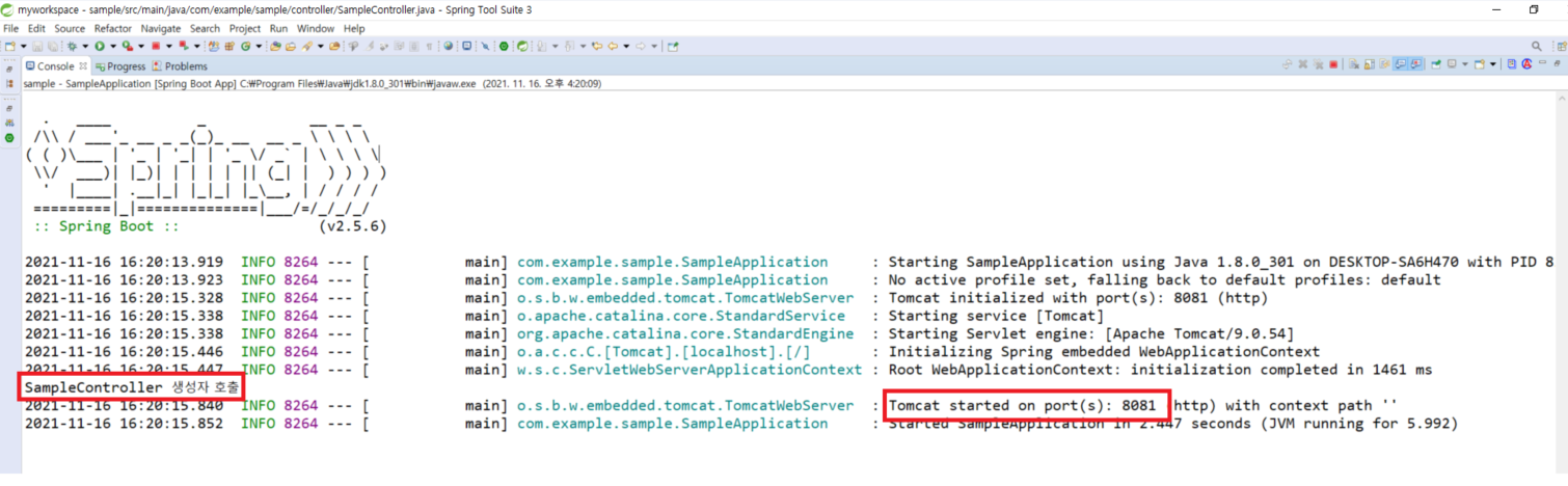 > 'SampleController 생성자 호출' 문자열 콘솔에 출력