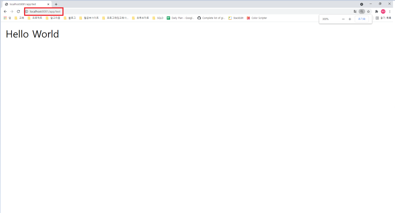 http://localhost:8081/app/test로 요청을 보낼 경우 "Hello World"를 응답하게 처리