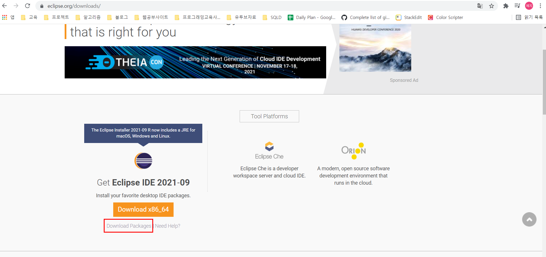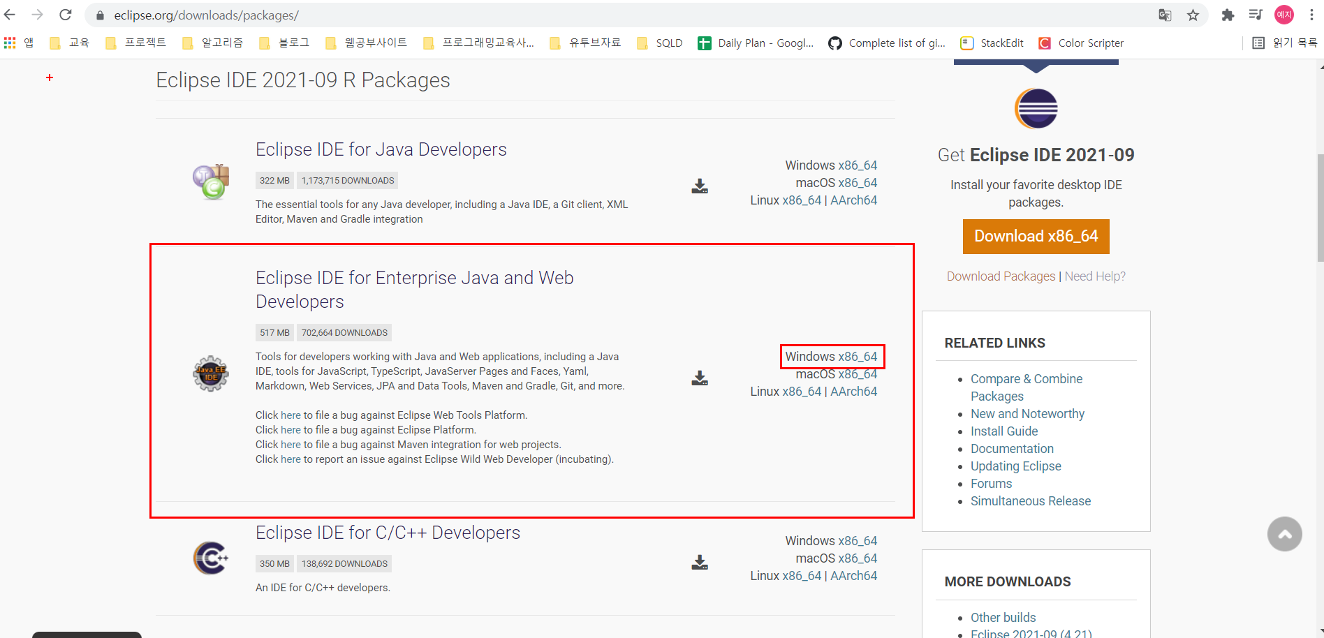 *Download x86_64를 클릭하면 이클립스를 설치할 수 있는 프로그램이 다운로드된다