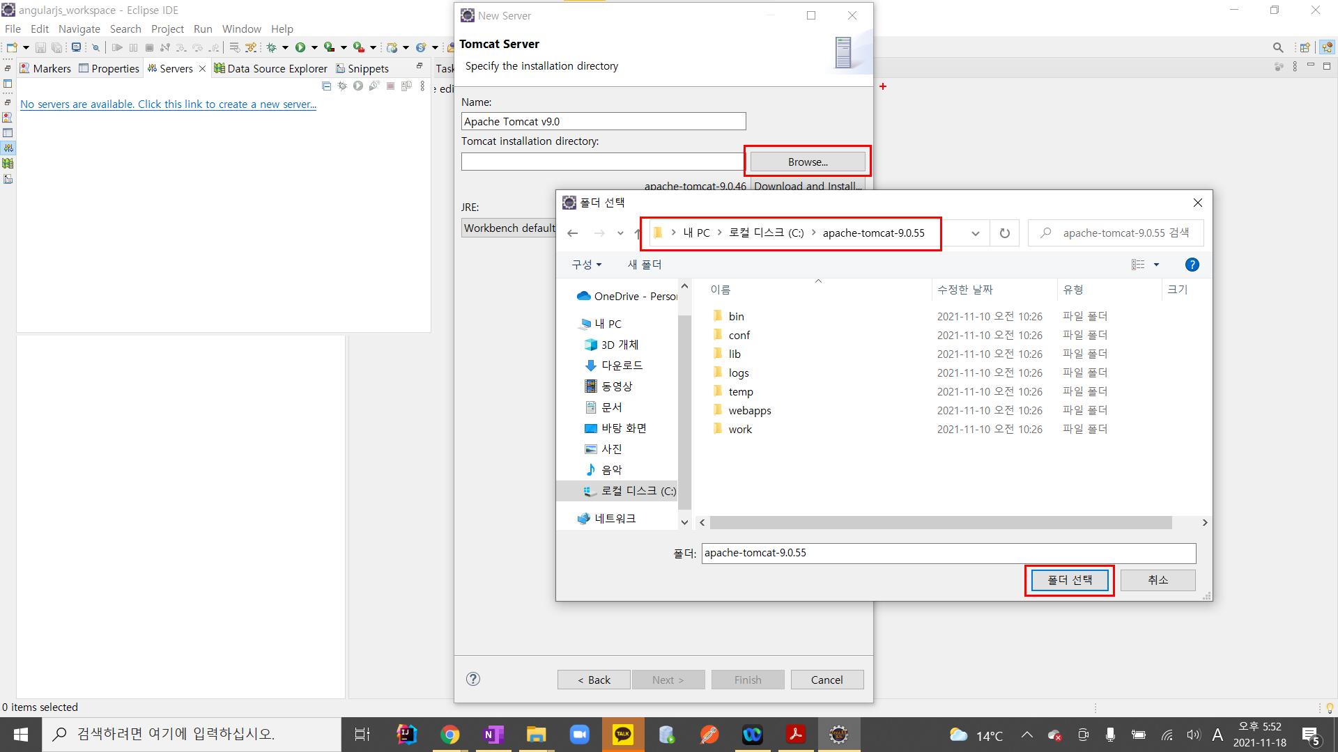 앞에서 C드라이브에 옮겨놓았던 tomcat9 폴더를 선택