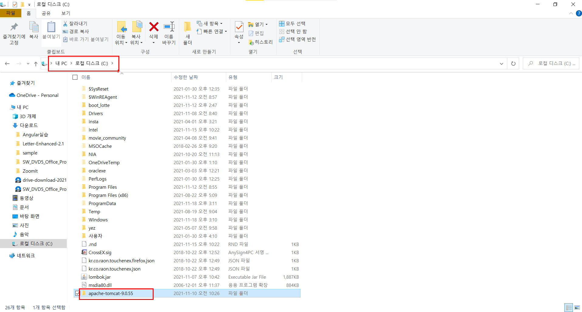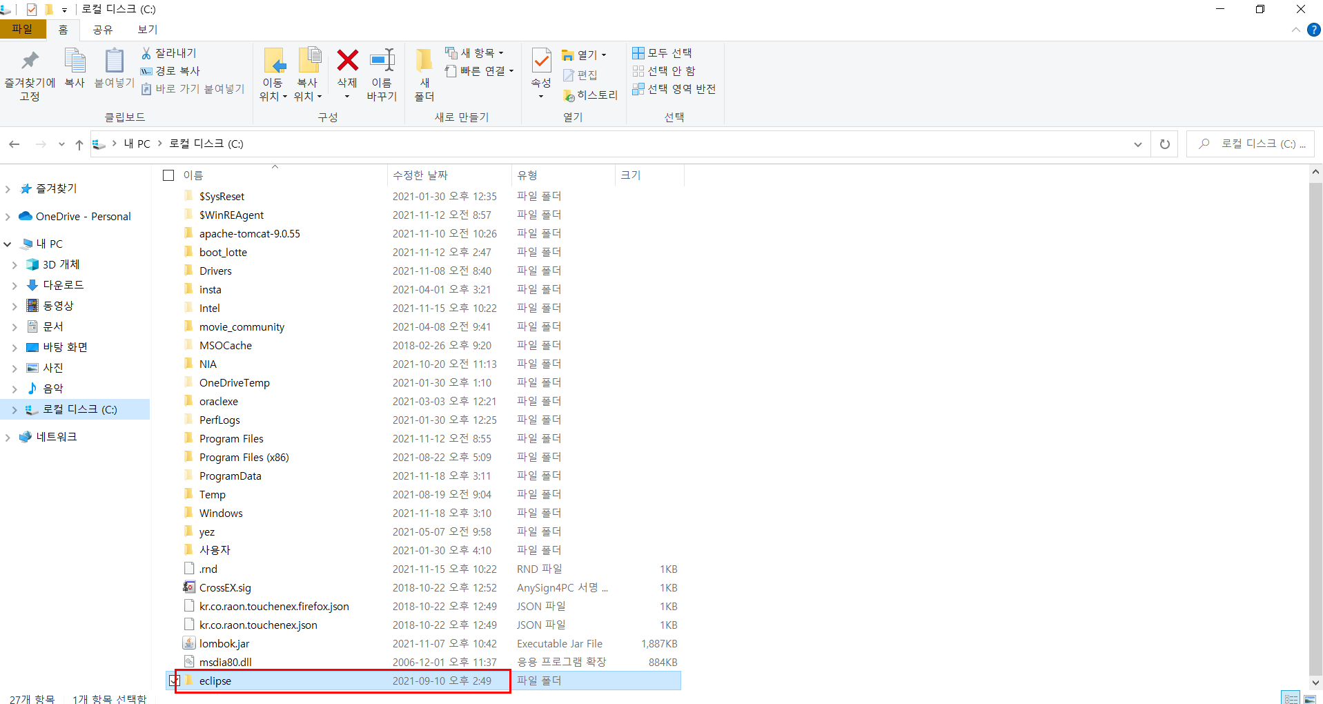 > 압축을 푼 파일을 C드라이브에 옮긴다
