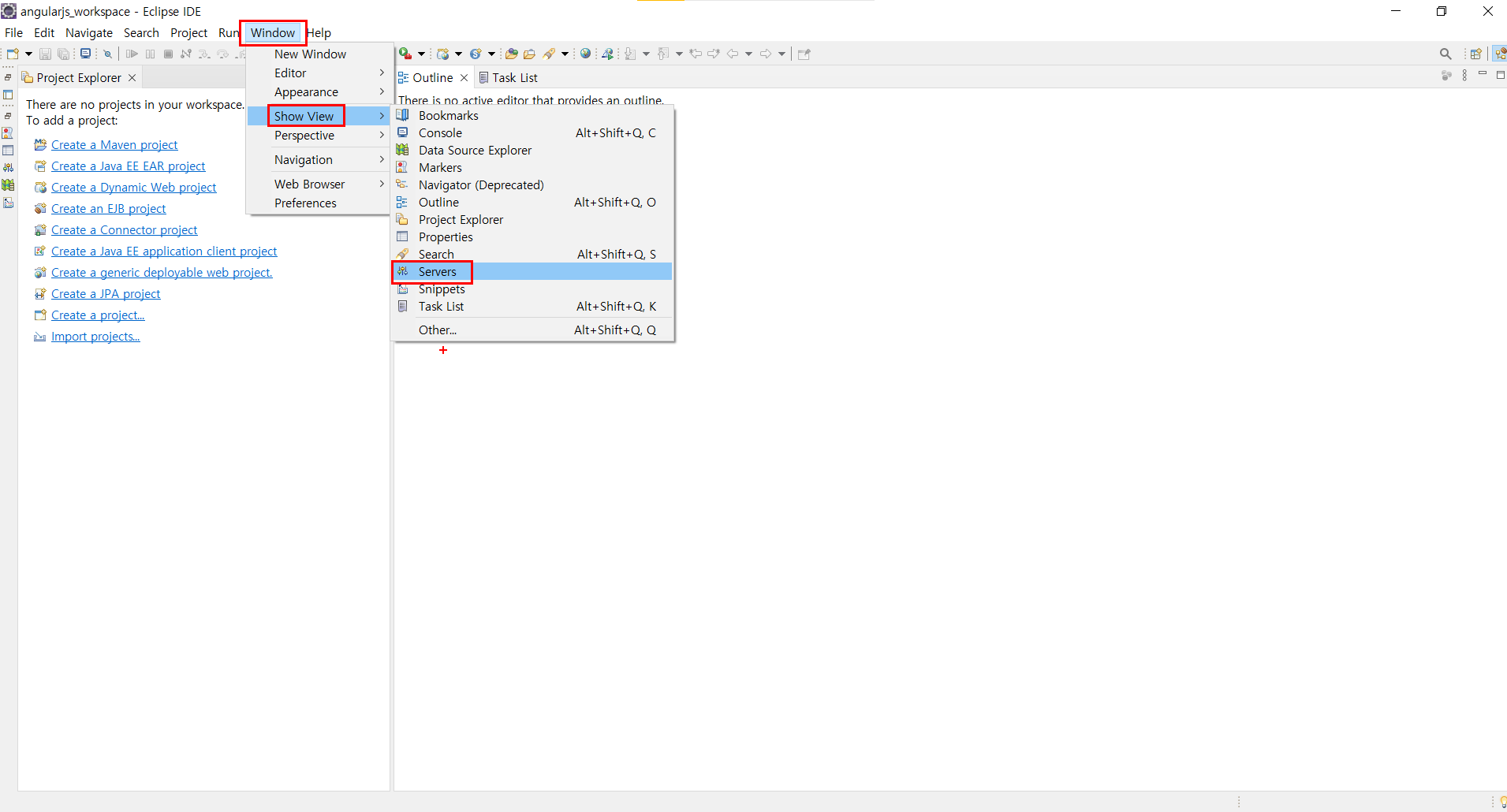 Window -> Servers 클릭