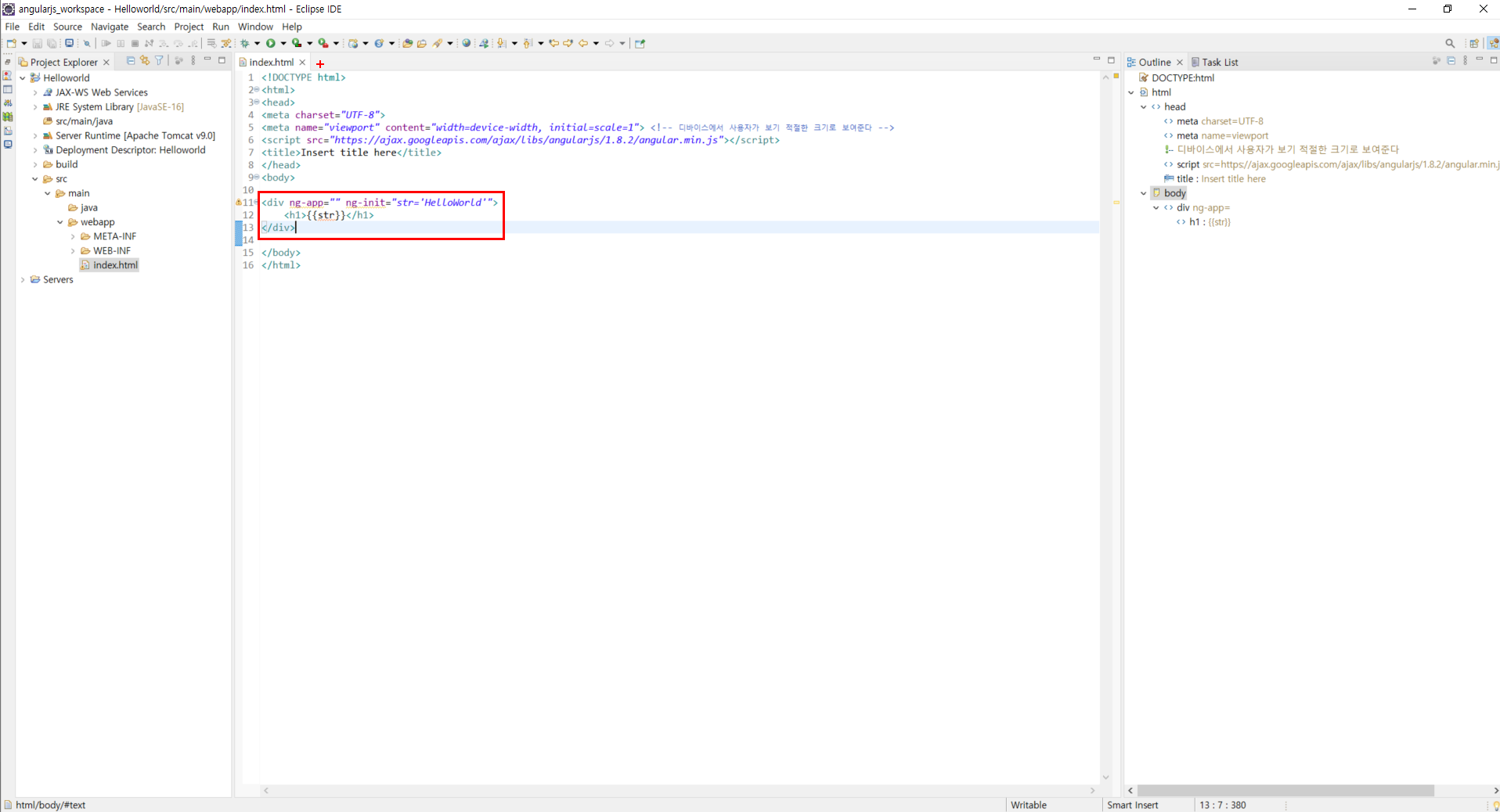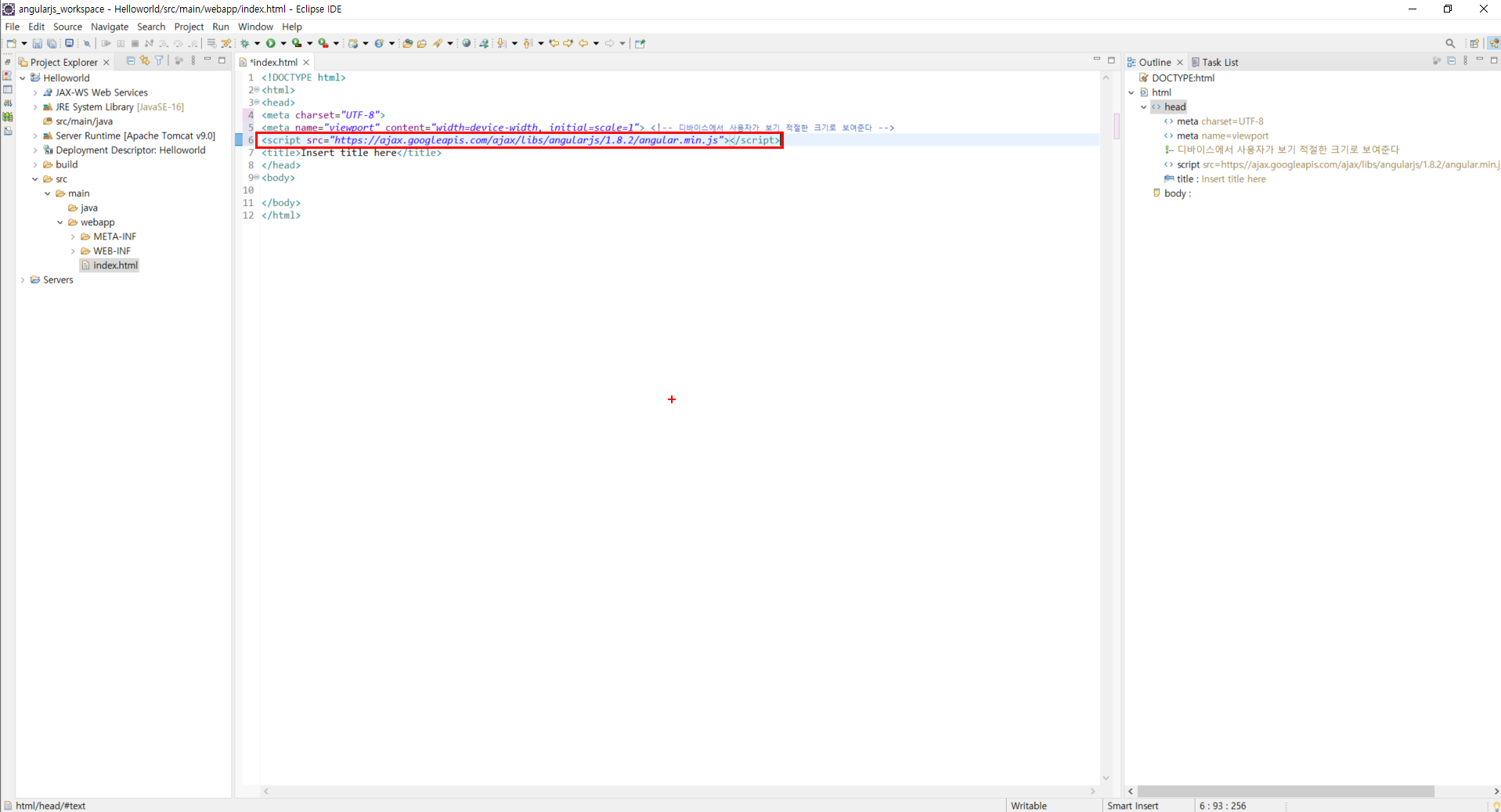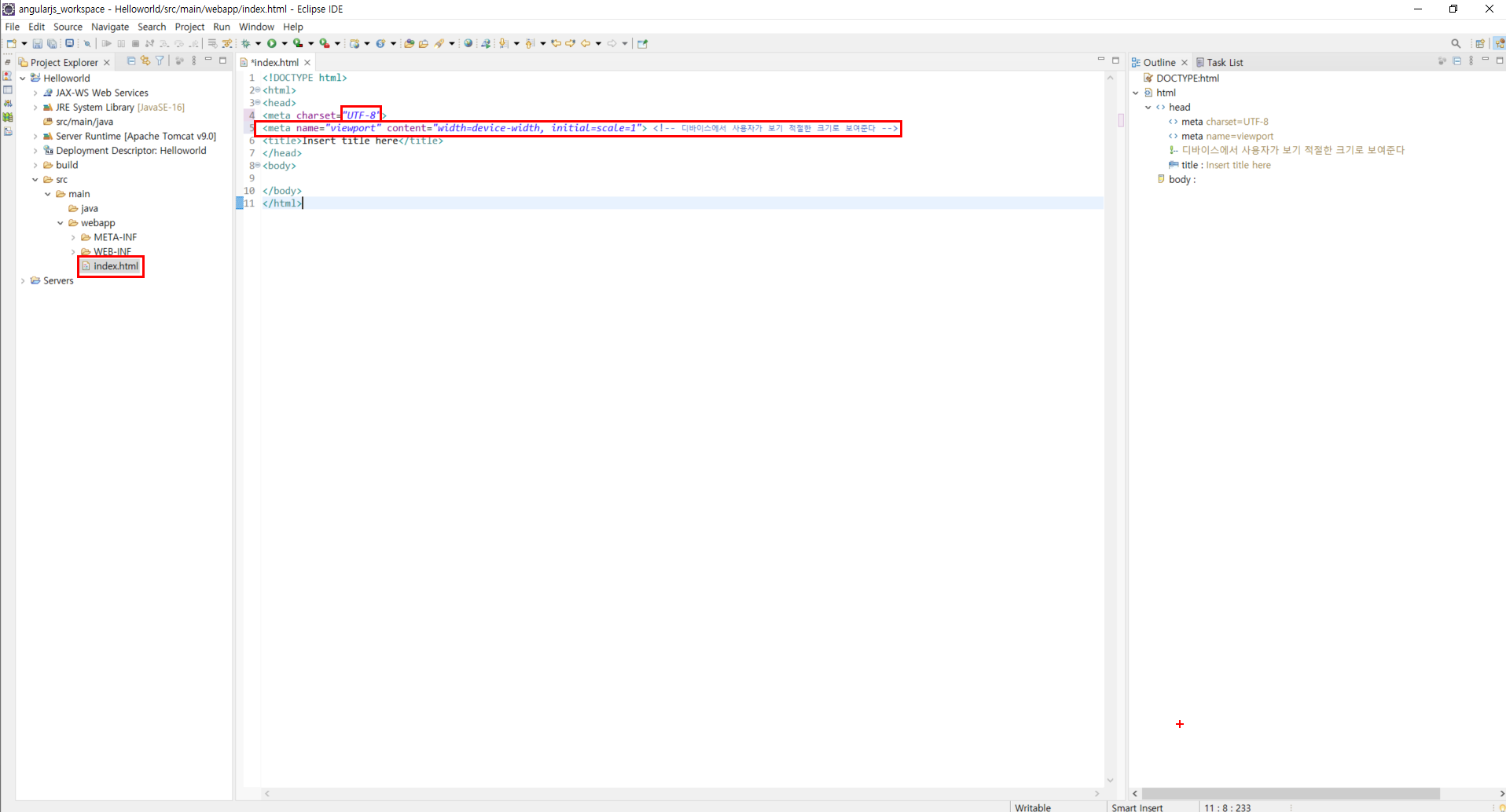 인코딩 설정 변경 및 viewport 설정 2. AngularJS 라이브러리 설정