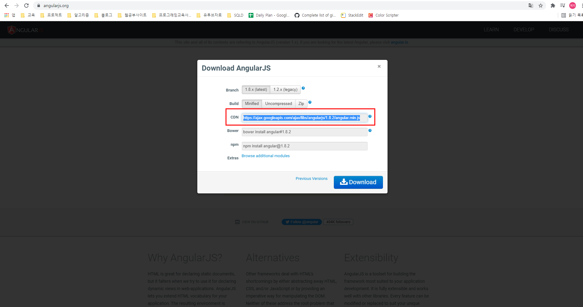 > AngularJS 라이브러리 사용을 위해 CDN 주소를 알아온다