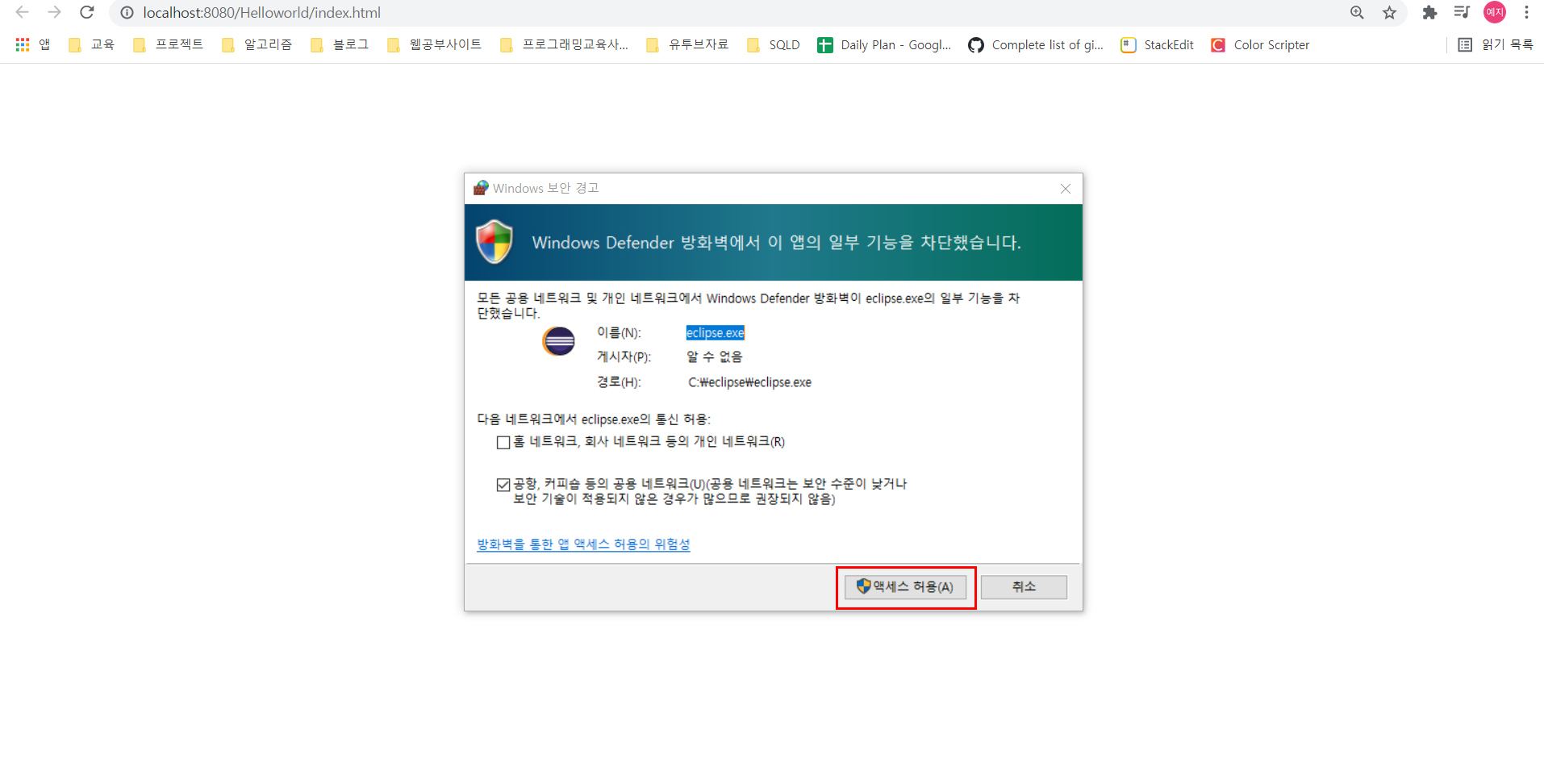 방화벽 액세스 허용