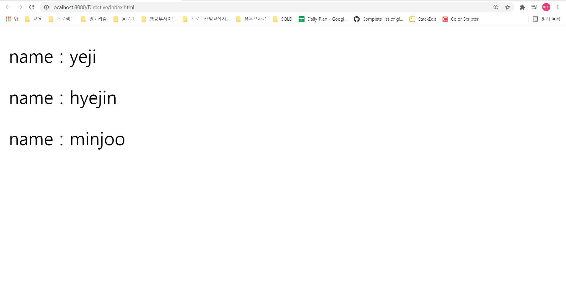 [AngularJS] (5) 지시자 | angular.directive(), ng-app, ng-init, ng-repeatProgramming/AngularJS 2021. 11. 20. 21:37