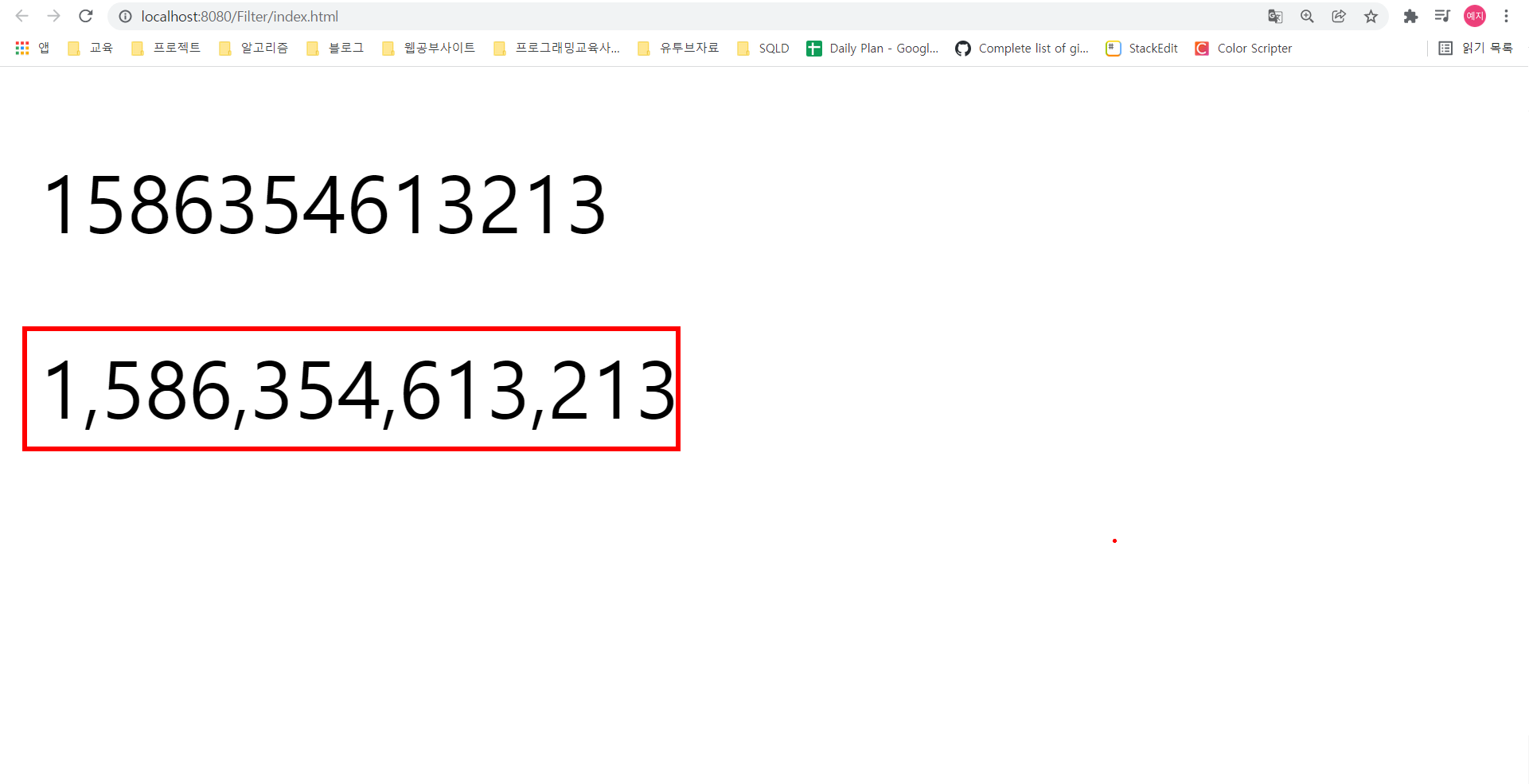- number : 지정된 숫자에 3자리마다 콤마 삽입