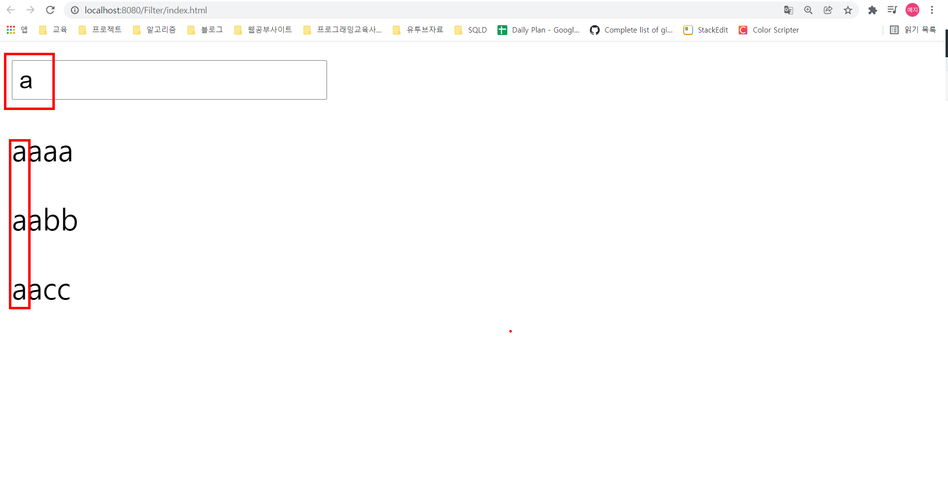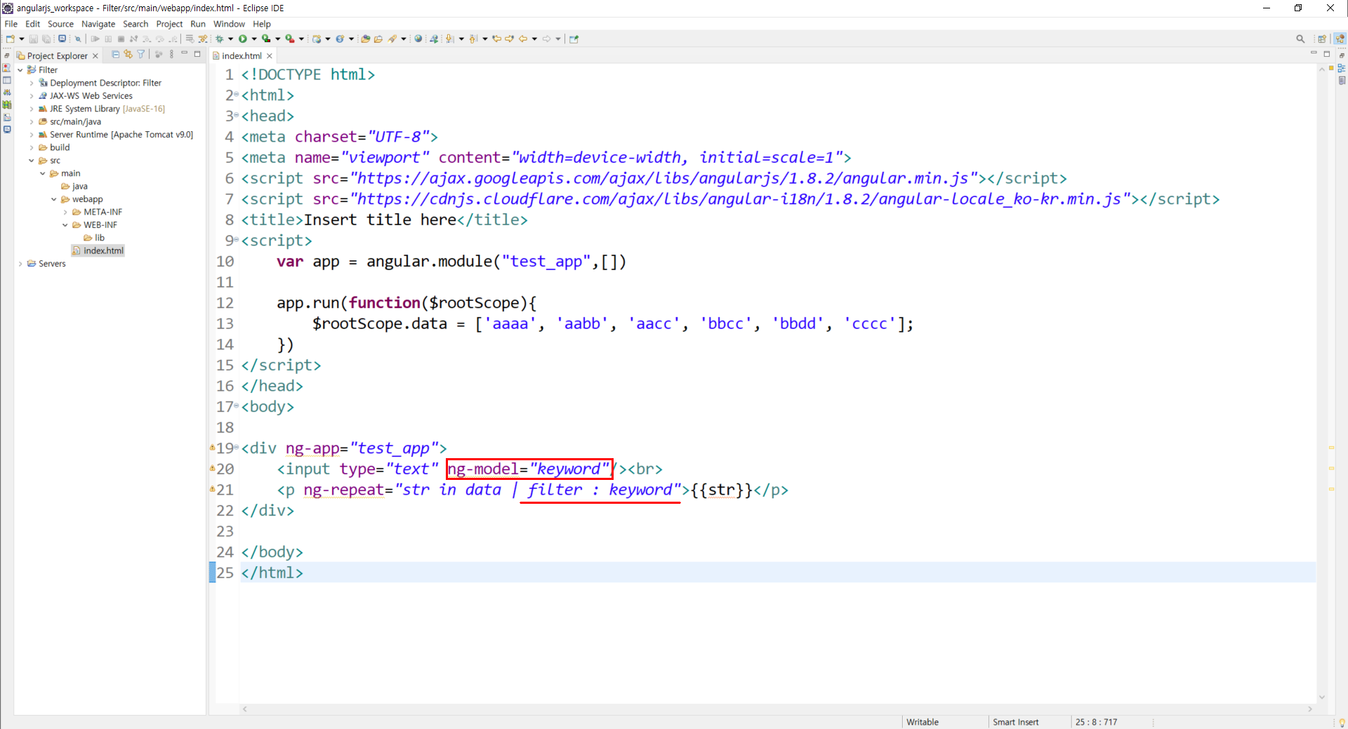 > data | filter : '필터링할 문자열' : 특정 문자가 포함된 요소만 필터링