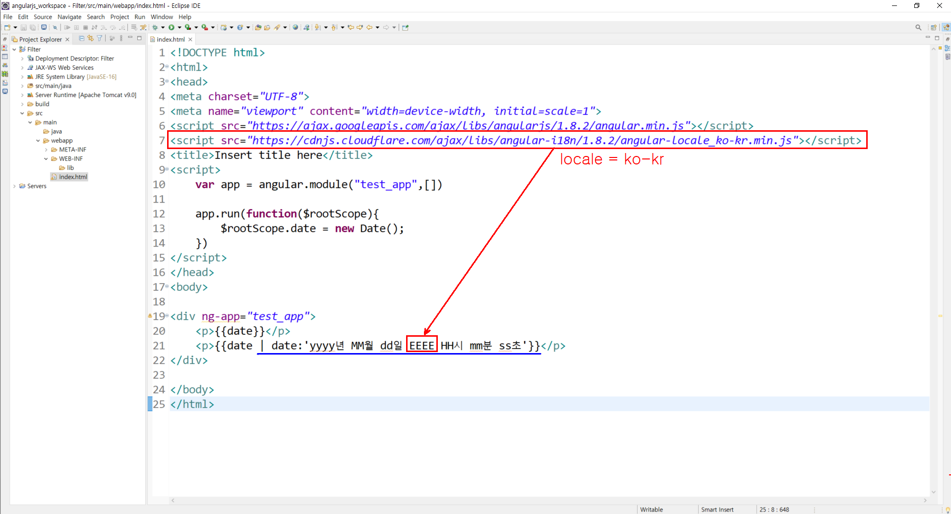 <script src="https://cdnjs.cloudflare.com/ajax/libs/angular-i18n/1.8.2/angular-locale_ko-kr.min.js"></script>https://docs.angularjs.org/api/ng/filter/date