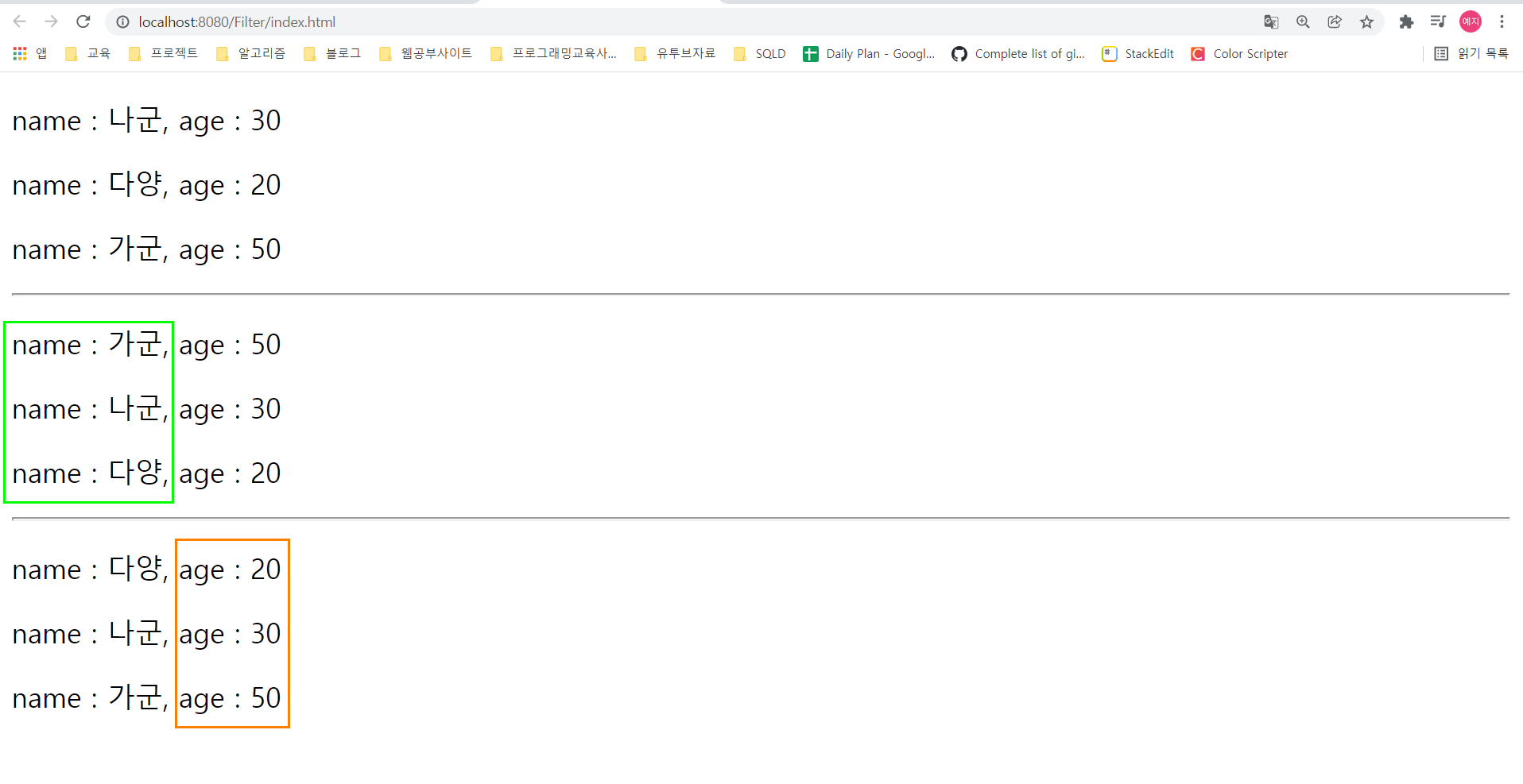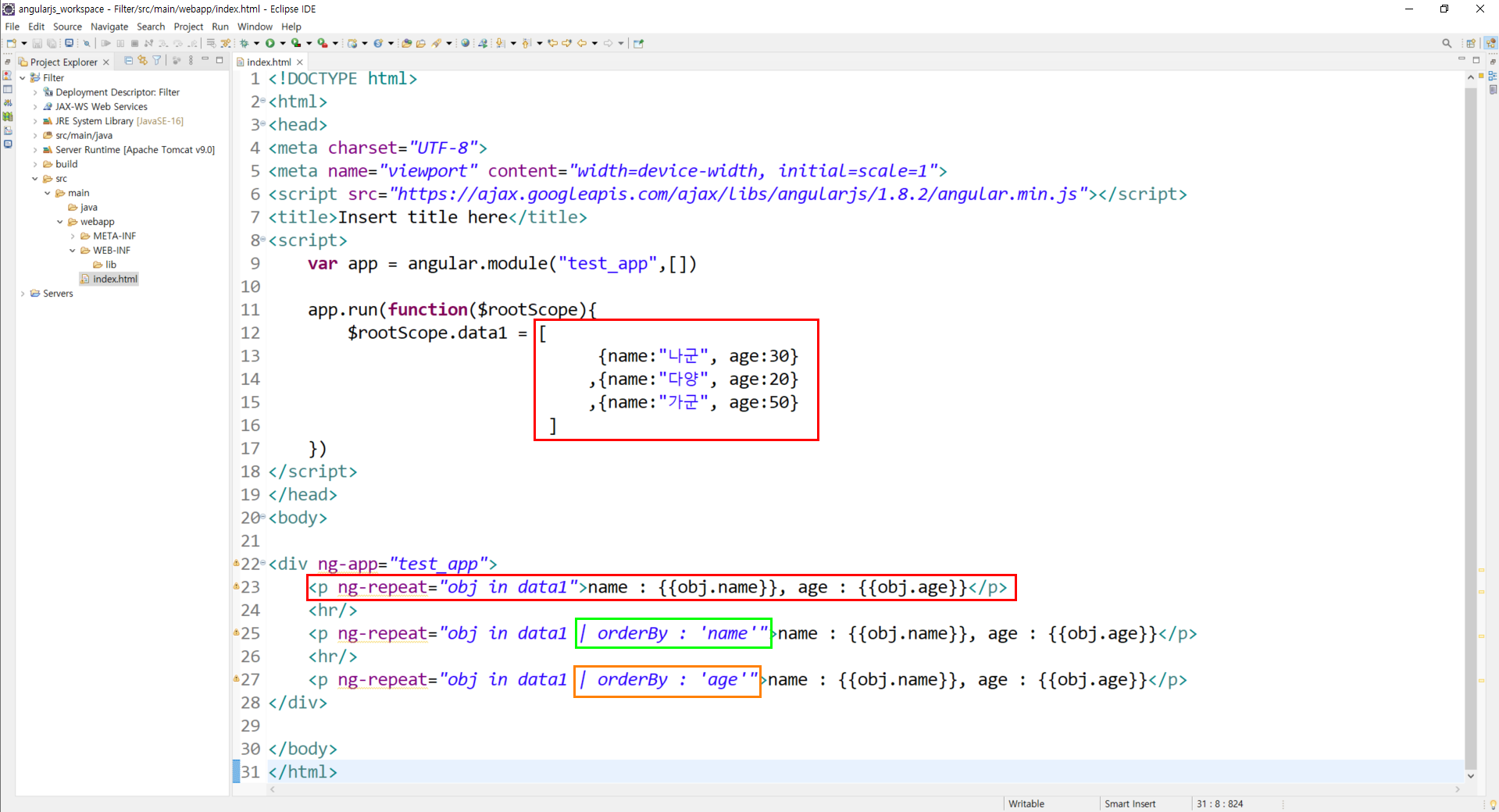 > data | orderBy : '정렬기준' : 설정한 정렬기준으로 데이터를 정렬