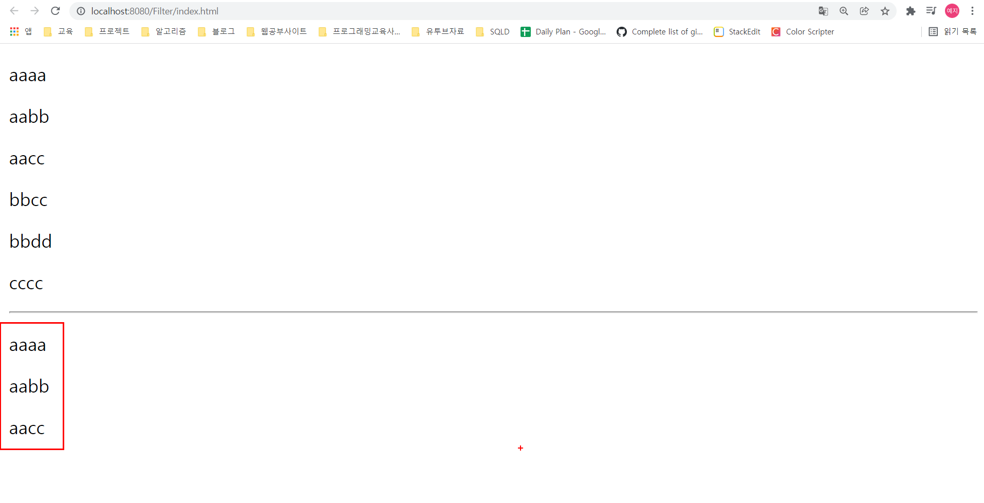 출력하는 데이터에 대해 필터를 적용해 데이터를 가공
