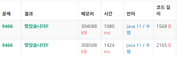 - 현재 학생이 아직 방문하지 않은 상태라면 visited[학생번호]를 true로 변경하고 다음학생(next)의 방문여부를 검사한다.