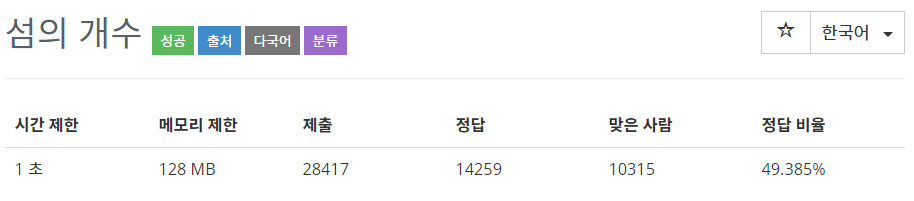 이어져 있는 섬은 하나의 섬으로 간주할 때, 섬의 총 개수를 출력해라.