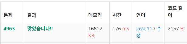 import java.io.BufferedReader; import java.io.IOException; import java.io.InputStreamReader; import java.util.LinkedList; import java.util.Queue; import java.util.StringTokenizer; public class b4963 { static int W, H; static int[][] map; static int SEA = 0, LAND = 1, VISITED = 2; public static void main(String[] args) throws IOException { BufferedReader br = new BufferedReader(new InputStreamReader(System.in)); StringBuilder sb = new StringBuilder(); while (true) { StringTokenizer st = new StringTokenizer(br.readLine()); W = Integer.parseInt(st.nextToken()); H = Integer.parseInt(st.nextToken()); if (W == 0) break; map = new int[H][W]; for (int i = 0; i < H; i++) { st = new StringTokenizer(br.readLine()); for (int j = 0; j < W; j++) { map[i][j] = Integer.parseInt(st.nextToken()); } } int cnt = 0; // 섬의 개수 for (int i = 0; i < H; i++) { for (int j = 0; j < W; j++) { if (map[i][j] == LAND) { // bfs로 이어져 있는 섬 체크 bfs(i, j); cnt++; } } } sb.append(cnt).append("\n"); } System.out.println(sb); } static void bfs(int x, int y) { // 상하좌우+대각선 int[] dx = {-1, 1, 0, 0, -1, -1, 1, 1}; int[] dy = {0, 0, -1, 1, -1, 1, -1, 1}; Queue<int[]> queue = new LinkedList<>(); queue.add(new int[]{x, y}); map[x][y] = VISITED; while (!queue.isEmpty()) { int[] current = queue.poll(); for (int i = 0; i < 8; i++) { int nx = current[0] + dx[i]; int ny = current[1] + dy[i]; if (isRange(nx, ny) && map[nx][ny] == LAND) {// 탐색결과가 섬일 때 queue.add(new int[]{nx, ny}); map[nx][ny] = VISITED; } } } } static boolean isRange(int x, int y) { if (x < 0 || x >= H || y < 0 || y >= W) return false; return true; } }채점 결과