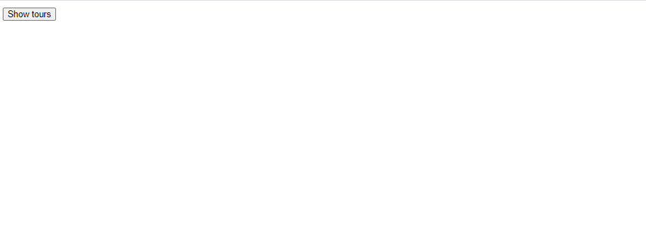 <!DOCTYPE html> <html lang="en"> <head> <meta charset="UTF-8"> <link rel="stylesheet" href="https://poiemaweb.com/assets/css/ajax.css"> </head> <body> <button class="btn">Show tours</button> <div id="content"></div> <script> function show() { // XMLHttpRequest 객체의 생성 const xhr = new XMLHttpRequest(); // 비동기 방식으로 Request를 오픈 xhr.open('GET', 'data/data.html'); // Request 전송 xhr.send(); // Event Handler xhr.onreadystatechange = function () { // 서버 응답 완료 && 정상 응답 if (xhr.readyState !== XMLHttpRequest.DONE) return; if (xhr.status === 200) { console.log(xhr.responseText); document.getElementById('content').innerHTML = xhr.responseText; } else { console.log(`[${xhr.status}] : ${xhr.statusText}`); } }; } const element = document.querySelector('.btn'); element.addEventListener('click', show); </script> </body> </html>출력화면