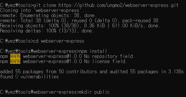 - Node.js 설치 후 Express로 웹서버 생성