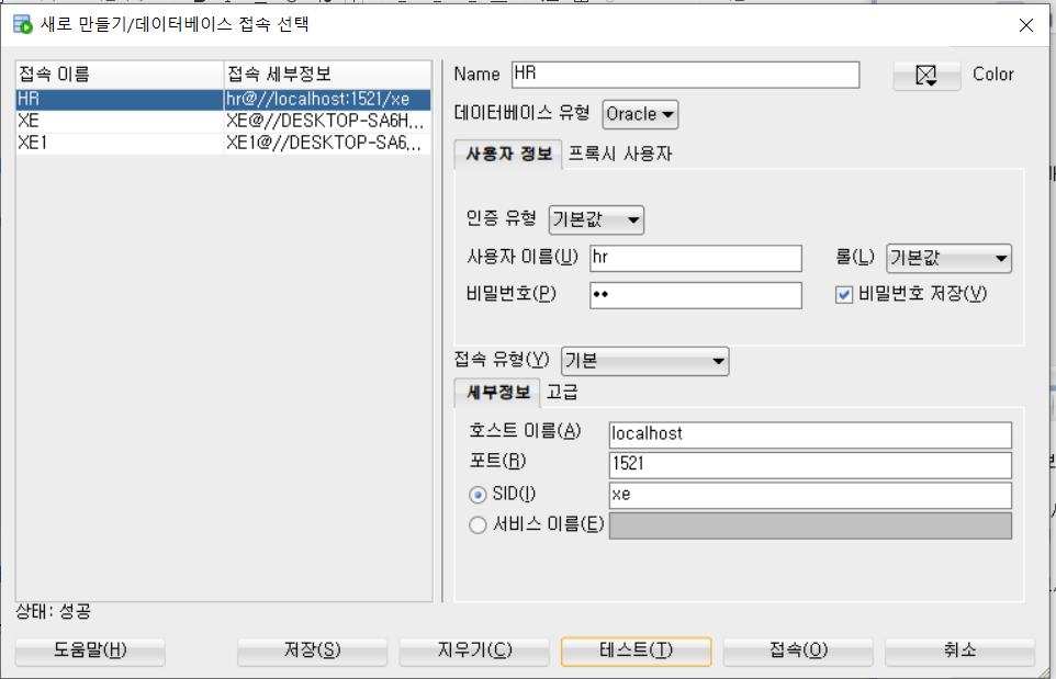 그래... - 그럼 HR 접속 말고, 다른 접속들이 SQL Developer에서 접속되는지 테스트해보았다.