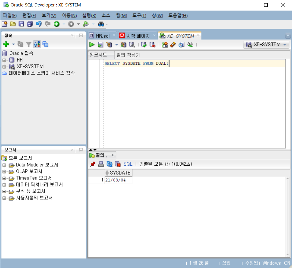 - 드래그한 부분과 SERVICE_NAME 모두 'XE'로 제대로 설정되어있다.