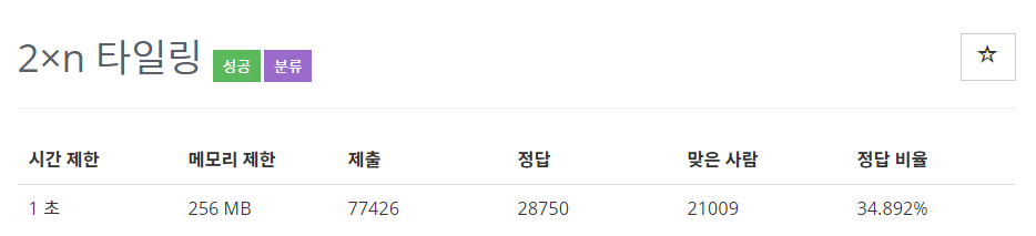 - dp[i]는 2가지 타일을 사용해서 2 x i 직사각형을 채울 수 있는 방법의 수이다.